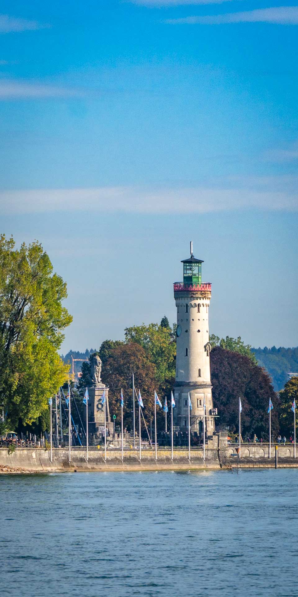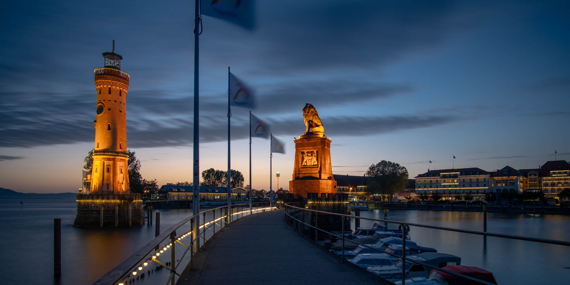 Die Hafeneinfahrt von Lindau ist zweifellos eines der bekanntesten und beeindruckendsten Wahrzeichen am Bodensee. Hier begrüßen der stolze bayerische Löwe und der historische Leuchtturm Besucher aus aller Welt und schaffen eine Kulisse, die ihresgleichen sucht.