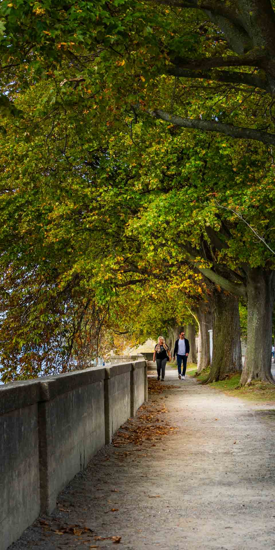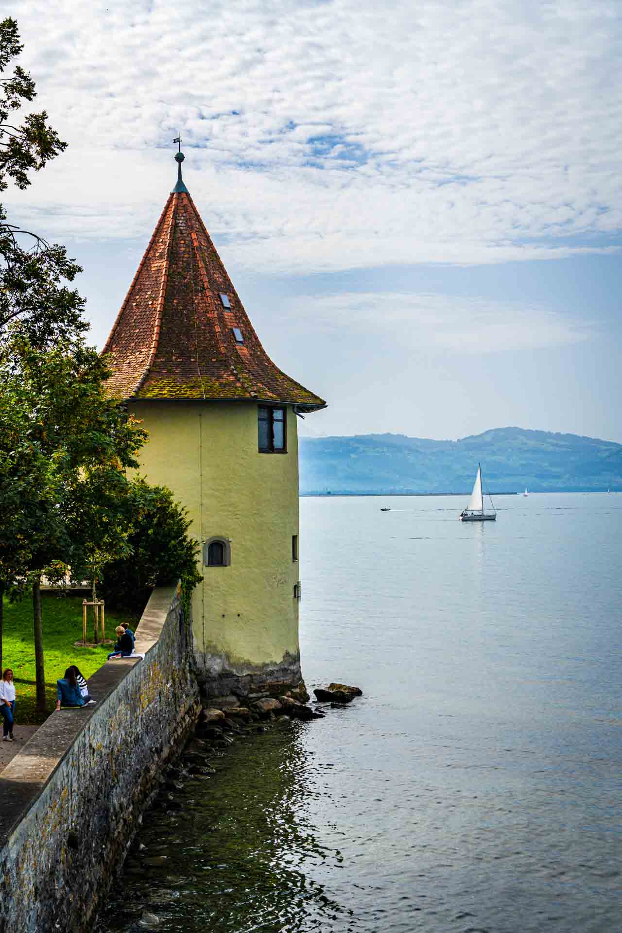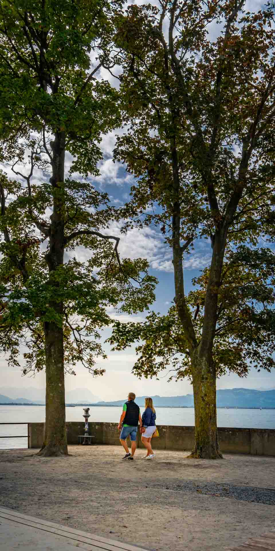 Während man unter alten Bäumen schlendert, hat man stets den glitzernden Bodensee im Blick. Die sanften Wellen des Wassers, das beruhigende Quaken der Enten und der weite Blick auf die Schweizer und österreichischen Alpen im Hintergrund schaffen eine Kulisse, die wie aus einem Postkartenmotiv entsprungen ist.
