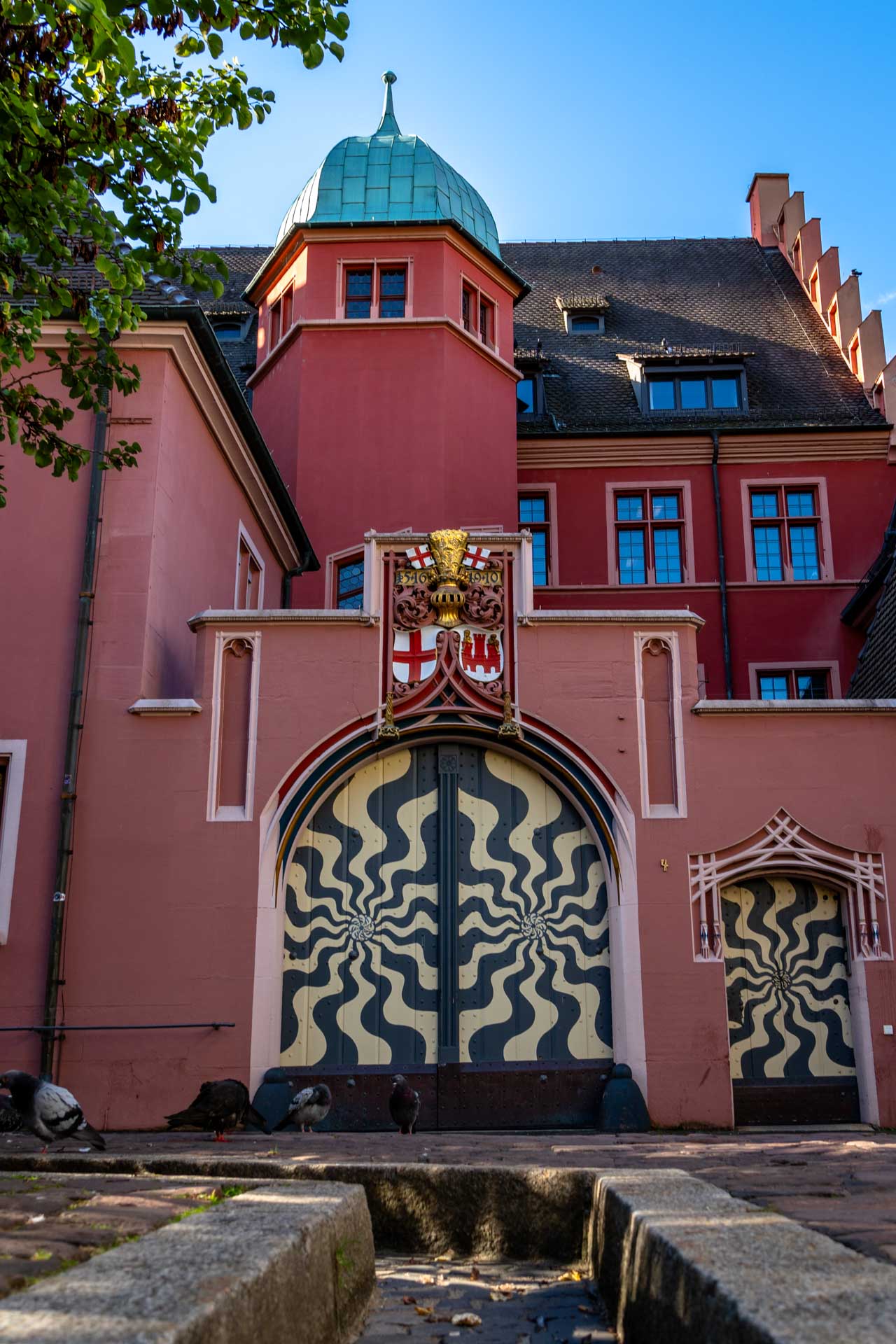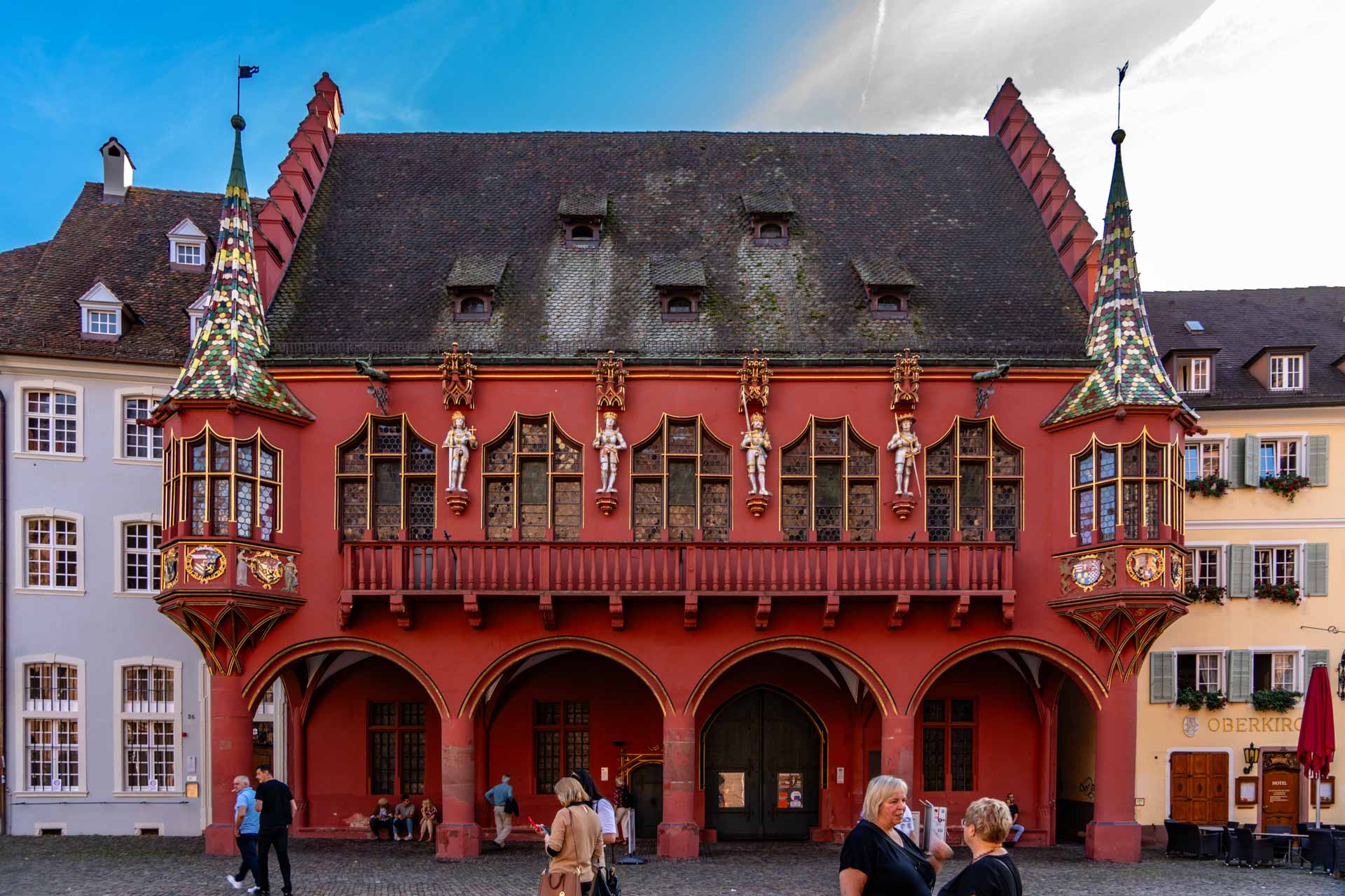 Am Münsterplatz befindet sich das historische Kaufhaus, ein prächtiges Gebäude aus dem 16. Jahrhundert, dessen rote Fassade und kunstvolle Erker sofort ins Auge fallen. Es diente früher als Handelszentrum und ist heute ein beliebter Veranstaltungsort.