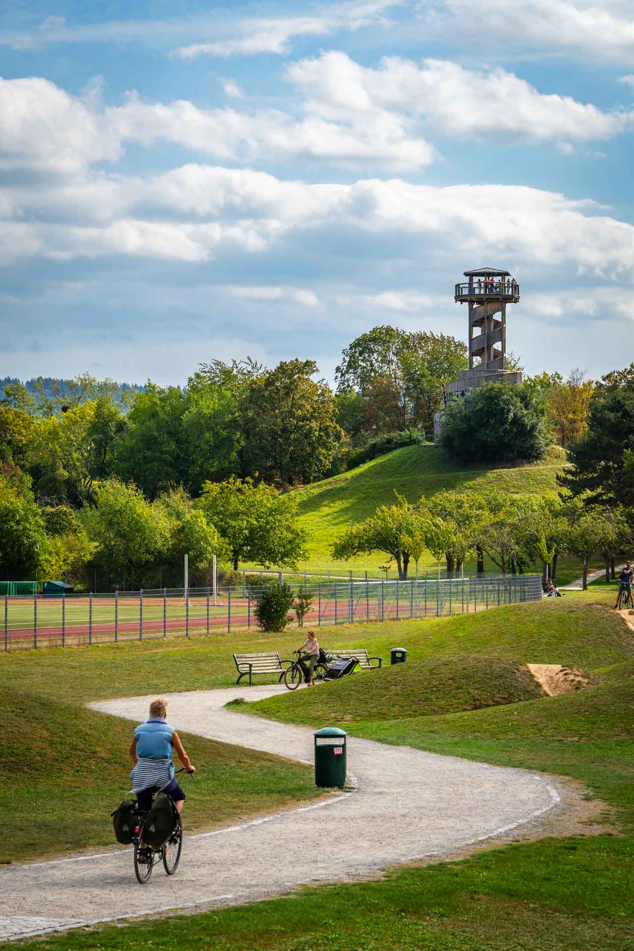 Wer genug vom Stadtleben hat, kann sich auf den Schlossberg begeben, einen Hügel, der sich direkt an die Altstadt anschließt. Der Aufstieg ist zwar ein bisschen anstrengend, aber die Aussicht über Freiburg und die umliegenden Weinberge ist jede Mühe wert.