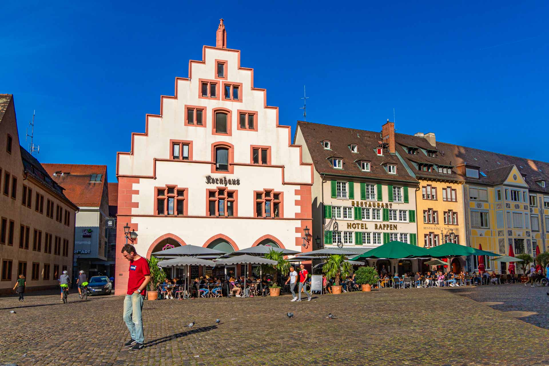 Jeden Tag (außer sonntags) bieten hier Bauern und Händler aus der Region frische Waren an. Obst, Gemüse, Käse, Blumen und natürlich die berühmten badischen Spezialitäten – all das kann man auf dem Markt entdecken. Direkt am Münster findet man außerdem die beliebten Imbissstände, an denen man die „Lange Rote“, die berühmte Freiburger Bratwurst, genießen kann.